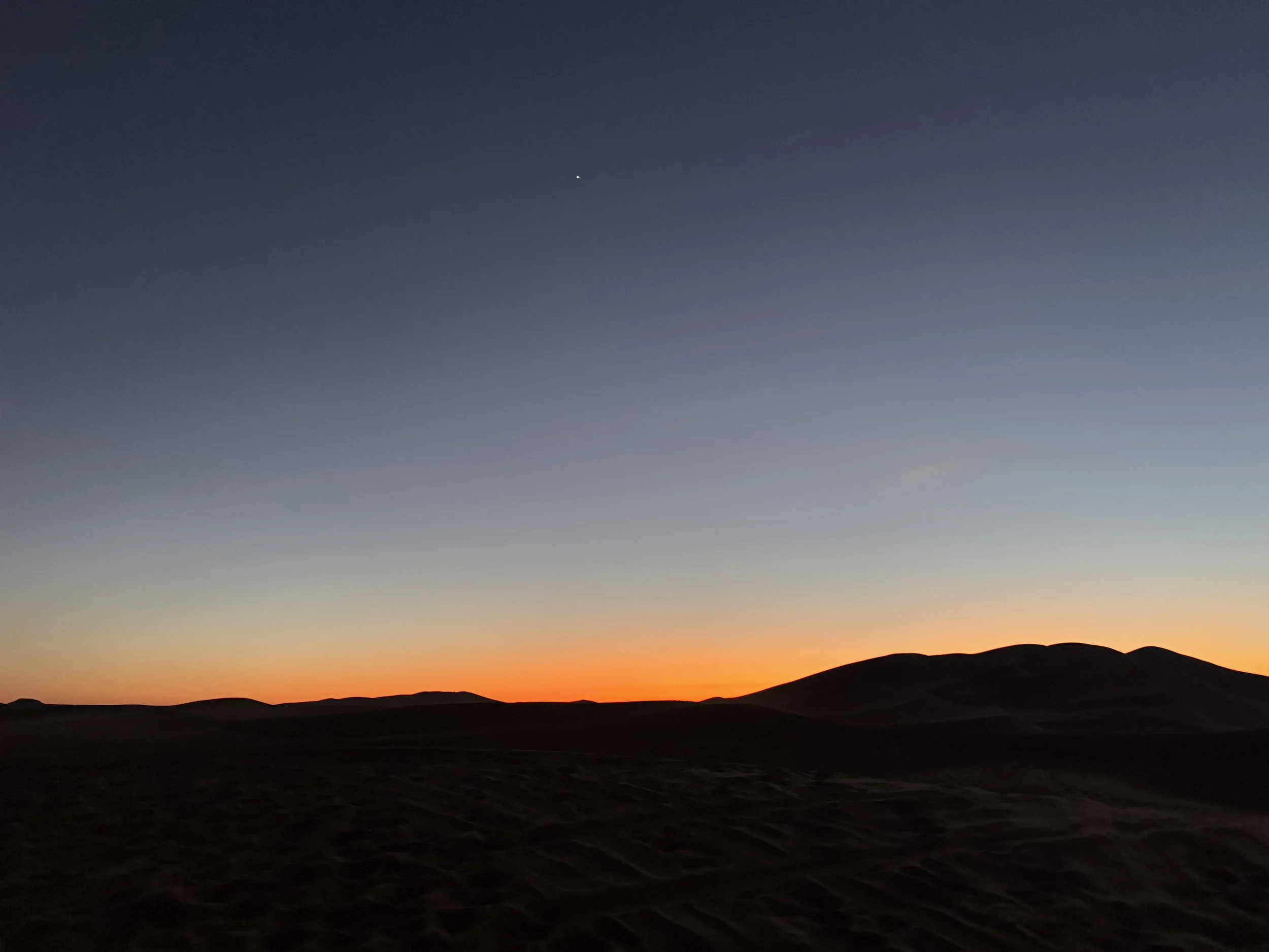 Dawn. Deep indigo sky. Dead quiet. Absolute stillness. Bitter cold. Eyes locked on that Dune out there on the horizon. Gotta get there. Got. To. Get. There.